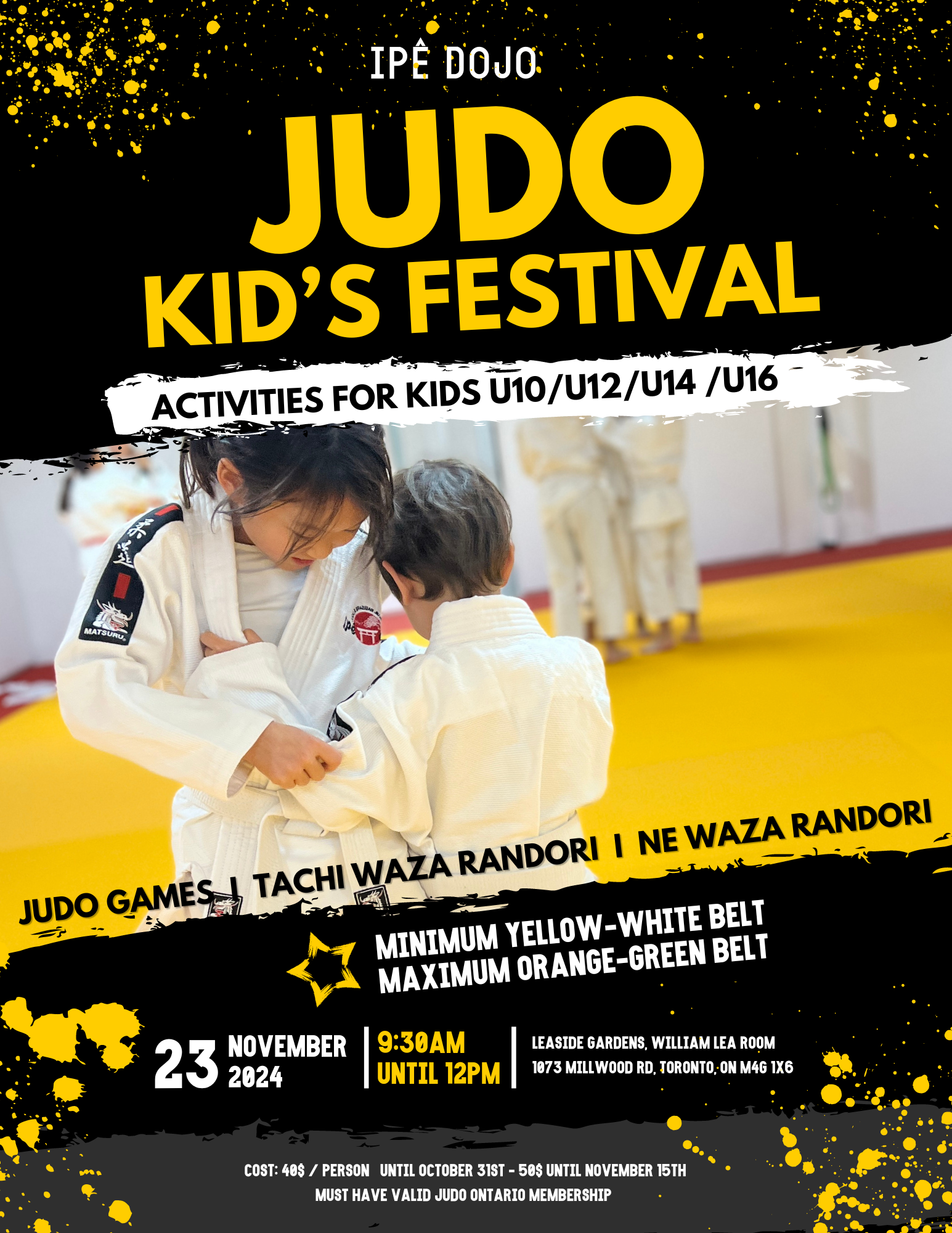 This festival is designed to provide safe, fun training for young practitioners. Participants will be led in a number of Judo related activities including group warm-ups and games. There will be a supervised randori portion, allowing participants to train with other kids close to their age and approximate size. At all points, we will have a number of upper level Judoka on the mat in order to supervise and facilitate this event.